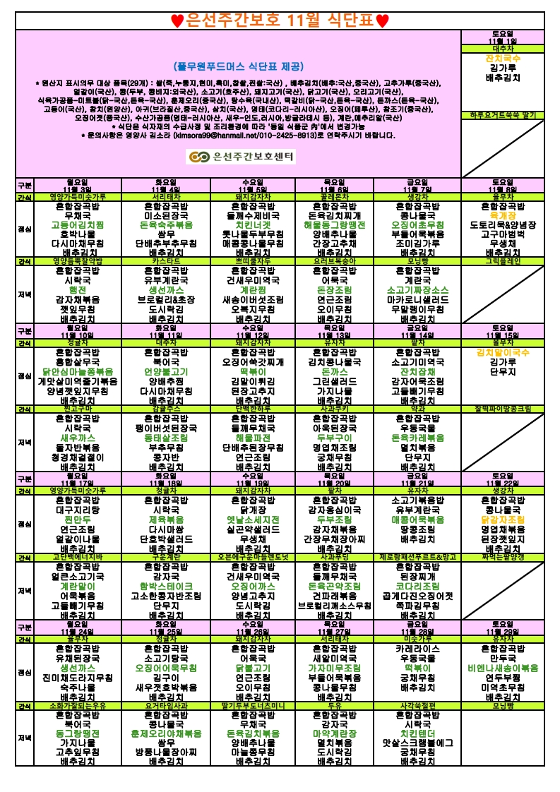 2025년 11월 식단표
